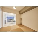 寝室兼用の和室は、柱型、梁型をアクセントに琉球畳で、くつろげる様に内装にもこだわりました。 奥様拘りのアジアンテイストな照明がお部屋の雰囲気にぴったりです。