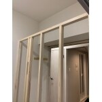 廊下側にクローゼットを作り、棚を取り付けました。
