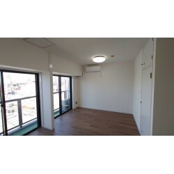 天井・壁はクロスの貼り替え 床は1.5mmのフローリングを上張り 木製の扉や窓枠は塗装 照明器具とエアコンは交換をさせていただきました。