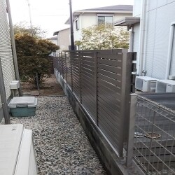 既存のアルミフェンスが、お隣のご自宅との目隠しの役割を果たせてないので、お隣から見えないような目隠しできるフェンスに交換をご希望。