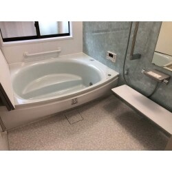 在来の広さは1坪以上だったので、万が一の時に備えて出入りがしやすいワイドのお風呂にしました。 これなら、お二人で入ってお1人が介護する事も可能です。 TOTOのほっからり床はクッション性があるので、膝をついても痛くないのも特徴です。