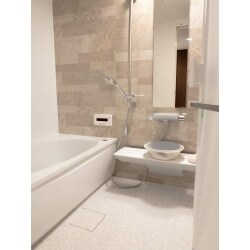 T社のマンションリモデルWYシリーズ Kタイプを設置いたしました。 アクセントには「パティオベージュ」を採用。お洒落な浴室空間に仕上がりました。また清掃性も抜群。特に床は皮脂汚れが流れやすく、乾きやすくなるように設計されている為、汚れやカビが出にくいです。