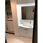 T社のオクターブスリムを設置いたしました。 ワイドLED照明で明るく広々とした洗面台になっています。以前の収納は開き戸タイプでしたが、引き出しタイプになったことで奥の物も簡単に取り出せます。またサイドの収納棚を撤去した代わりに上部にウォールキャビネットを設置して収納力を高めました。