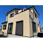 付帯部を黒にしたことでメリハリが付き引き締まったイメージになりました。 白色に比べ、ベージュは汚れが目立ちにくいのが特徴です。 それに加え汚れが付きにくい超低汚染リファインという塗料にしたので、雨で汚れを流してくれ美観を保てます。