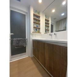 洗面化粧台をまるごと交換するか、下台のみ交換して埋込収納を何か良い形にするか、提案が欲しい。