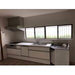 掃除のしやすい換気扇を取り付けるにあたり、現状の配置では 難しいため、配置換えや、色合いなども含めて現在利用している調理台を使用しながら、効率良く動ける動線で提案させて頂きました。