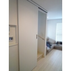 戸建てにお住まいのF様。 リビングが2階にあり、階段から冷気が流れ込み寒いので階段部分に引戸を取り付けたいとリフォームのご依頼を頂きました。