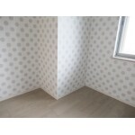 フローリングはペールグレー色。壁のドット柄とブルーグレーのクロスは、可愛らしいけれど子どもっぽ過ぎない、落ち着いた雰囲気に。クローゼットは開戸から三枚引戸に変更しました。
