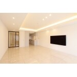 元々アンティーク調だったお部屋をモダンでホテルのような空間にしたいとご相談をいただきました。 LDKは白を基調とした広々とした高級感のある空間に、床はベージュ系の大理石、空間を広く見せるためにリビングのドアはガラス扉にされたいとご要望をいただきました。