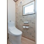 手洗いからの水はねを考慮して、メインのクロスは撥水・抗菌機能のあるクロスを採用しました。手摺も設置し、老後も安心してお使い頂けるようにご提案しました。 1階は、トイレも床暖房と内窓を施工しました。安全に、快適にお使いいただけるトイレになりました。