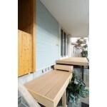 フェンスなどは撤去して行き来しやすいように。タイルがとても印象的に。