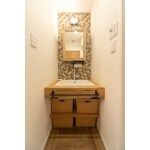 無垢の木・モザイクタイルがおしゃれな洗面台