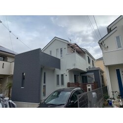 外壁素材の違いがコントラストの強いカラーでグッとモダンな印象に変身しました
