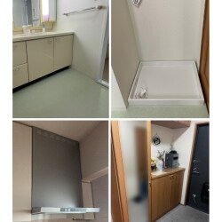 ・洗面室は、水栓金具と洗濯パンの交換とクッションフロアの張り替え。 ・レンジフードの交換。 ・玄関収納の扉の補修。