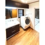 奥行きを活かした脱衣スペースと収納が増えた洗面化粧台