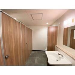 施工後:女子トイレ 扉を片開から引き戸に変更。