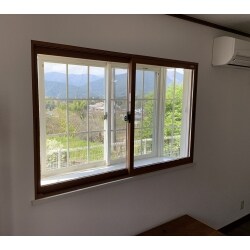 地域柄、冬場にサッシ廻りが結露し易く、寒いということでご相談頂きました。 今回は、内窓をご提案させて頂きました。 LIXILのインプラスという商品で、 結露抑制、断熱効果、防音効果、冷暖房効率アップなどの効果が 期待できるサッシとなっています。 今現在ついている窓の内側に、 もう一つ樹脂製の窓を付けるといった工事となります。 お部屋の中側から見ても、木目の窓枠となっているので、 お部屋の印象も自然に仕上がりました。
