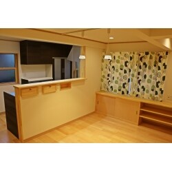 ・リビングスペースを2階に計画したが天井高が不足しており天井高を確保する為に小屋裏を利用して確保した ・筋交いが入っていない所を利用して開口部を設けた ・ご主人が趣味のパソコンを楽しめるように、書斎を好きなテーストで趣味を満喫出来るようにLANや電源系を集中させた