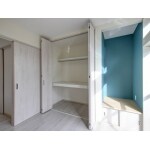 お気に入りの壁紙と十分な収納の寝室