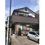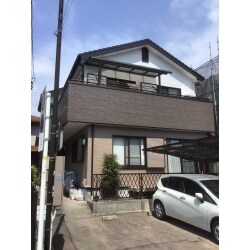 ベランダ部分を濃い色にして、引き締まった外観になりました。また、屋根と雨樋の色を合わせることで、雰囲気が一層引き締まりました。