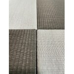 豊富なデザイン、カラーの中でも半畳ヘリ無しをご提案させて頂きました。理由としましては、デザイン重視と一言頂いたからです。カラーをお選び頂き、畳を張る際の向き、お部屋に取り込まれる日の光の反射により様々な見え方があり大変気に入って下さいました。ただ、今回は初めて畳の張替をするということでお色味に悩まれておりましたので、統一感が出るようにお部屋のクロスと同系色をご提案させて頂きました。