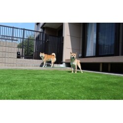 フェンスに高さを持たせ、転圧して平にしたお庭に人工芝を引きました。