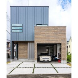 車やバイクをいじるのが趣味で、ガレージ付きの面白い間取りにしたい。外観にはこだわりたい。工具が置ける棚などあるといい。