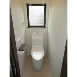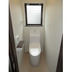 TOTOのお掃除しやすいGG800へリフォームしました。GG800はフチなし便器なのでお掃除しやすく、自動洗浄機能も付いているので洗浄の際、手をふれることなく清潔です。ウォシュレットのノズルも使うたびに自動で除菌してくれるので清潔です。床は拭きやすく水に強いクッションフロアにしたので、お掃除がしやすくなりました。今回は家全体のリフォームでトイレの場所も変更したので、南側に窓をつける事ができ、とても明るいトイレになりました。