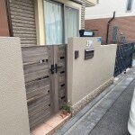 門扉は既存のものを撤去後、ブロック内側に柱を建てて内開きの親子扉をご提案致しました。またブロック塀は塗装を致しました。