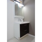 1面鏡の洗面化粧台を取付けと内装工事