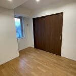 備え付けの家具や収納は撤去し、お部屋の空間を広げました。 床は明るい色にしましたが、建具や設備機器に濃い色を入れ、アクセントとしました。 また、リビングダイニングには温水式床暖房を入れ、1年を通して快適な空間となるよう努めました。