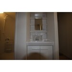 洗面化粧台のスペースを造作し、洗面化粧台を新設。