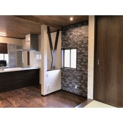和室キッチンの間の壁を抜いてLDKへ。 小さめサッシを使い明かりが入るように。 ご主人のダーク色へのこだわりが活かされたLDKへ
