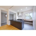 水廻りメーカーのショウルームで見た、リシェルSIのセラミックキッチンを気に入って頂き、2列配置のアイランドキッチンをご採用下さいました。無垢の床材やデザイン性のある建具等も使い、モデルハウスのように素敵なお家になりました。