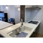 ホワイトで統一した開放的でお手入れのしやすいオープンキッチン