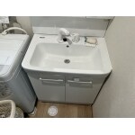 脱衣所でもある洗面所を洗面台を交換し、内装も貼り替えました。