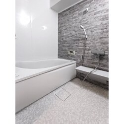 クレアライトグレーのアクセントパネルがお洒落な浴室に。