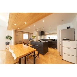 キッチンの向きを変え、リビングを広く魅せる工夫をしましょう。キッチンは思い切ってブラック1色にし、高級感を出しましょう。