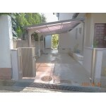 駐車場からお庭へ続く道のブロック段差を無くし、滑らかなスロープを作りました。安全のため手すりを取り付け、道路側には伸縮門扉を新設しました。 また、隣家との境界に2種類のフェンスも設置しました。