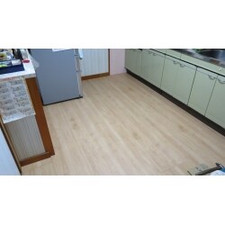 木目調のフロアシートで、淡い色を使えば明るくすっきりとして、広々と見えます。
