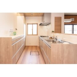 キッチンとバックセットの間を広く(1メートル)取ることで、娘様が帰ってこられた際にも2~3人でキッチンに立てる十分な広さを確保しました。