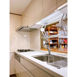 マンションでしたので、決められた間口に収まるキッチンを選ぶ必要がありました。限られた条件の中でも、最大限お客さまのご要望に添えるように商品を選定し提案しました。 ダイニング側から入ってくる日の光に映えるように、白色を基調としたデザインをご提案しました。