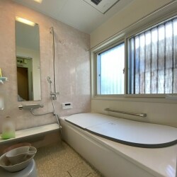 1坪タイプのユニットバスで以前よりも浴槽が大きくなったので、ゆったりとお風呂に入れます。手摺もつき、床も滑りにくいので安全面でも安心です。