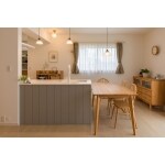 既存の対面キッチンはお部屋のすみにあり閉鎖的。2×4の構造上間取り変更に制限がある中、女性プランナーのアイデアで動かせない壁、梁は残しキッチンの腰壁を撤去。ダイニング側に向いていたキッチンは、リビングを見渡せるアイランドキッチンになり、最小限の間取り変更でLDK全体のイメージをガラリと変えることができました。LDKの主役となったキッチンはウッドワンのスイージー。インテリア好きな奥さまが選ばれたグレイッシュなカラーは、ご自宅の雰囲気にピッタリです。元々キッチンがあった床部分には、プランナーからタイルを貼るご提案をさせていただき奥さまお気に入りの空間。眺めているだけで癒される、北欧風の温もりのある空間でお料理やご家族との時間をさらに楽しめそうです。