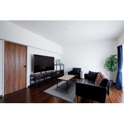 和室の2間を洋間に変え、LDKと寝室にしました。垂れ壁と思っていたものが、鉄筋コンクリートの大きな梁であったため、梁に合わせてリビングと寝室を分け、壁のように馴染ませ、以前よりも圧迫感がなく広々と感じるようにしました。また、元々和室だったため天井が低く、広々とした空間を損なわないよう照明はダウンライトにしました。ダウンライトのスイッチは、パナソニックの「アドバンスシリーズ」を採用。タッチ操作で照明の色調や明るさを変更でき、スマートフォンでも操作可能な照明にしました。洗練されたシンプルモダンなインテリアに統一し、クールな印象の空間になりました。