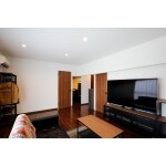 壁・天井と木目カラ―がアクセントのナチュラルなリビング