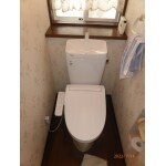 ヘリンボーンとブルーグレーの北欧風トイレが完成しました