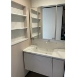 浴室横にある洗面室を、洗面台と脱衣スペースに分けたい。 洗面台の収納はなくても良いので、床から空いたスペースが欲しい。
