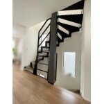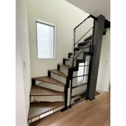 スケルトン階段につきまして、落下防止ネットを裏面から張り付けました。鉄骨の色に併せてブラックにてご提案致しました。
