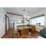 キッチンの下がり壁を撤去し、カップボードもホワイトにしたことで明るいLDK空間になりました。 ペンダントライトが空間をよりお洒落に演出し、会話の弾むダイニングになりました。 窓は、断熱性の高いサッシに交換、床には床暖房を施工し、暖かくお過ごし頂けるようになりました。